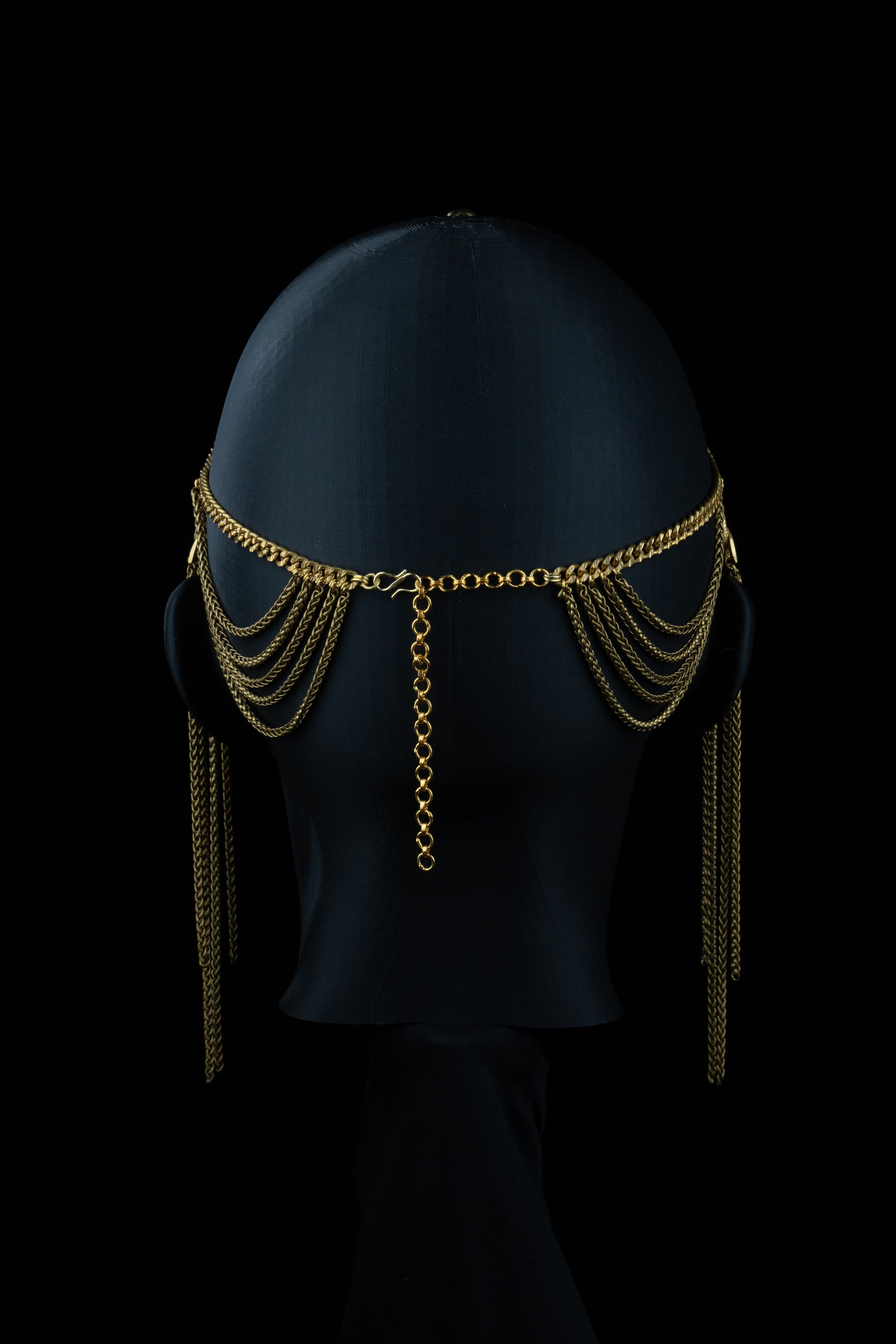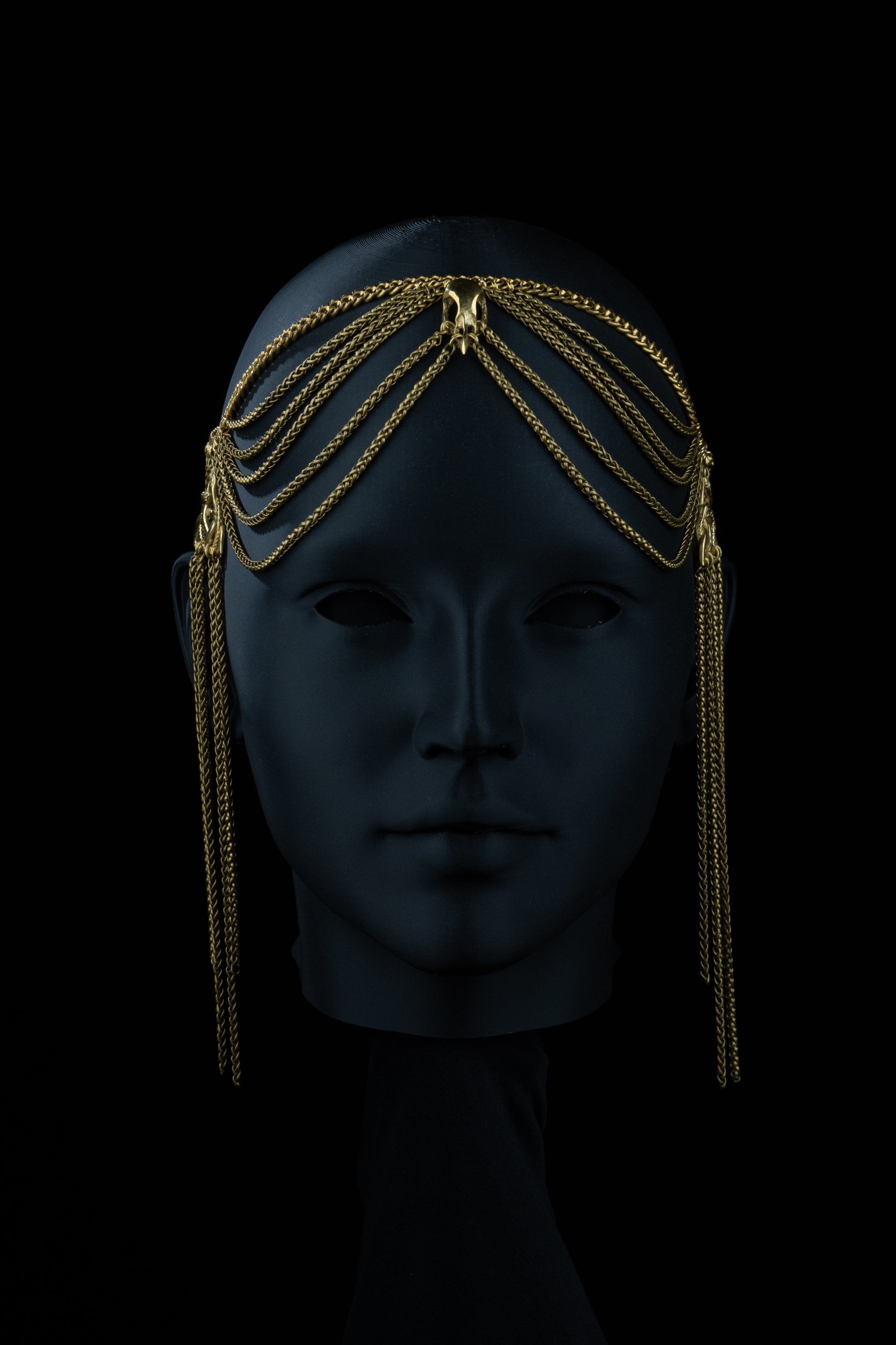 Brass chains drape like strands of fate, guiding the wearer inward, toward the power of inner vision.
