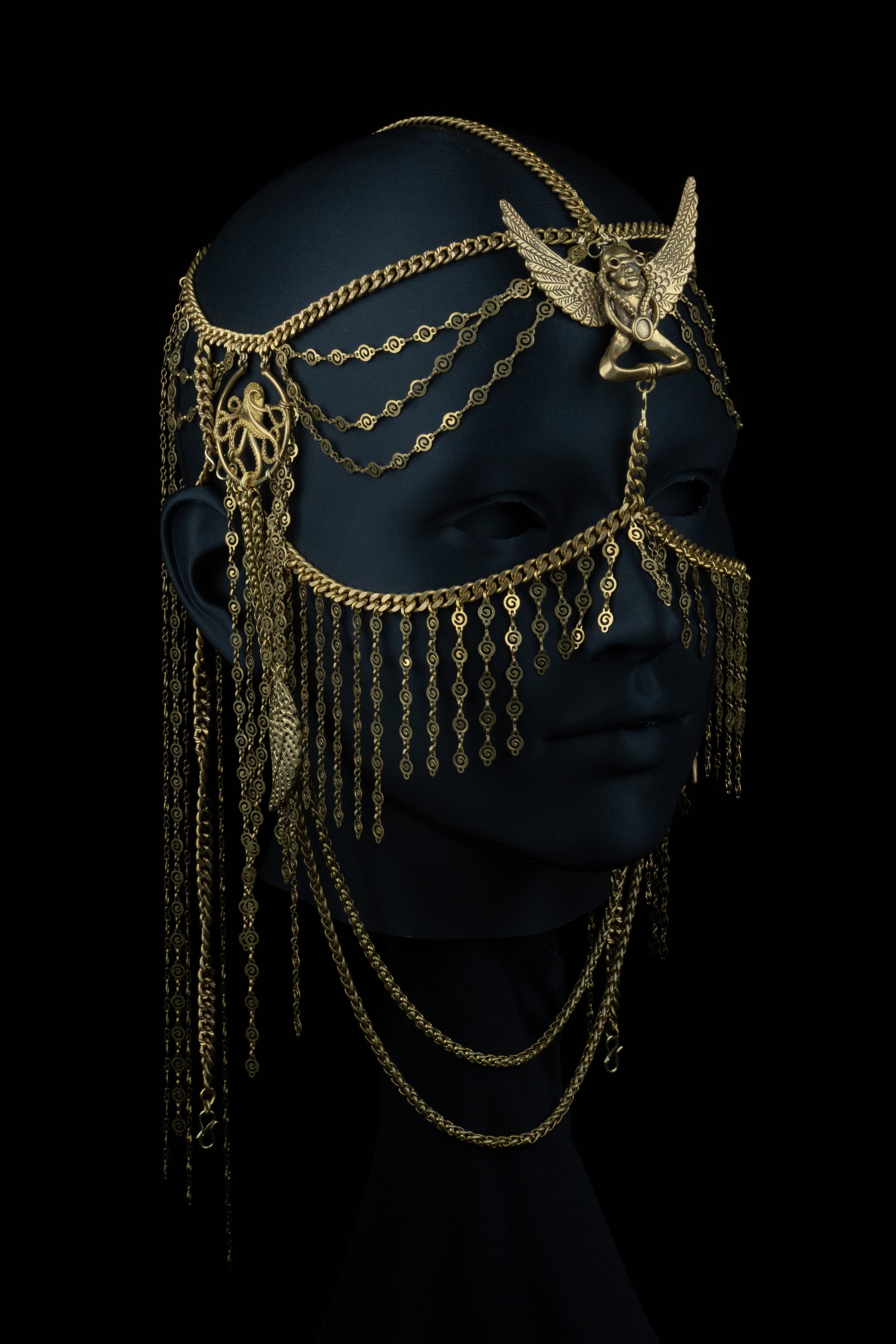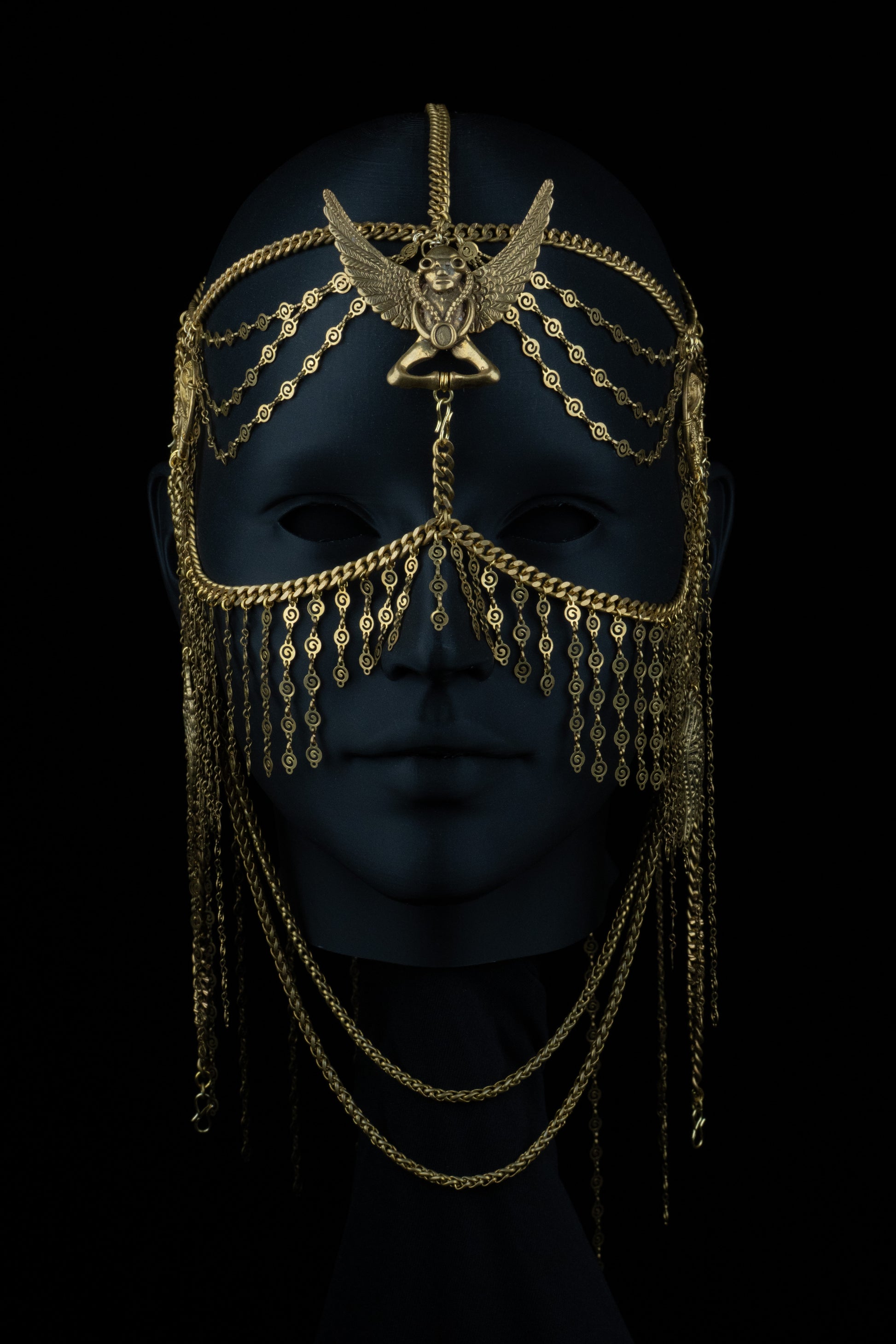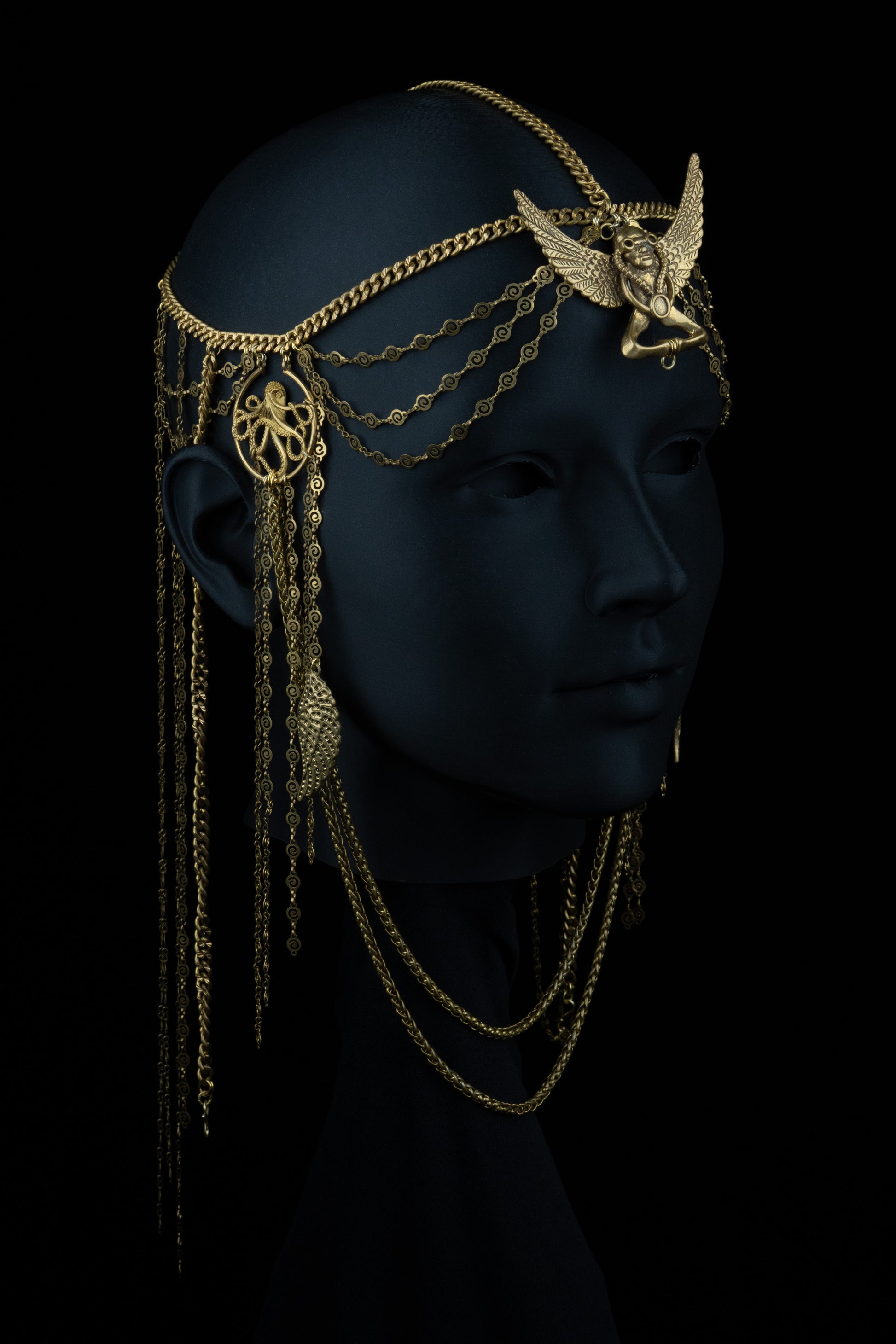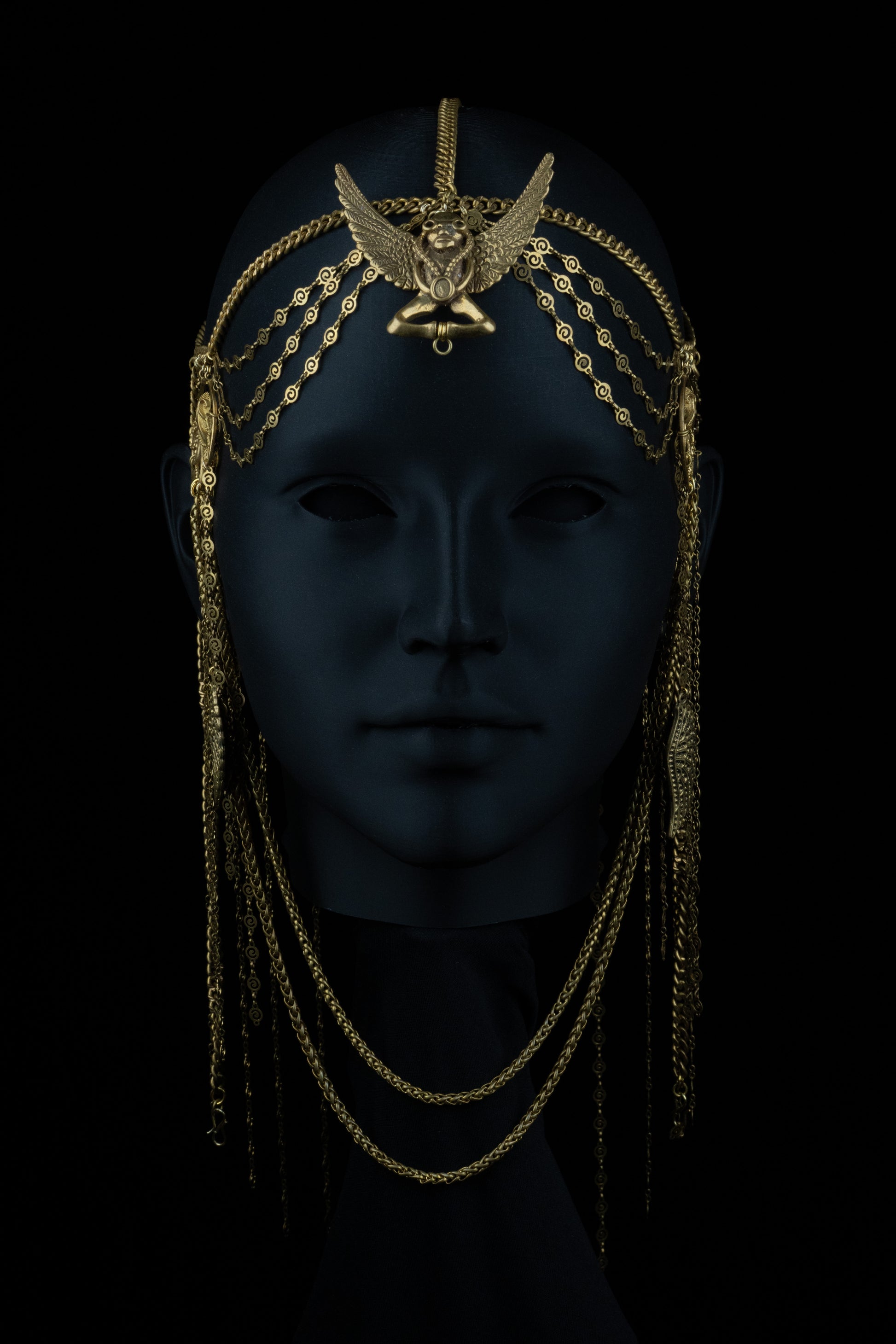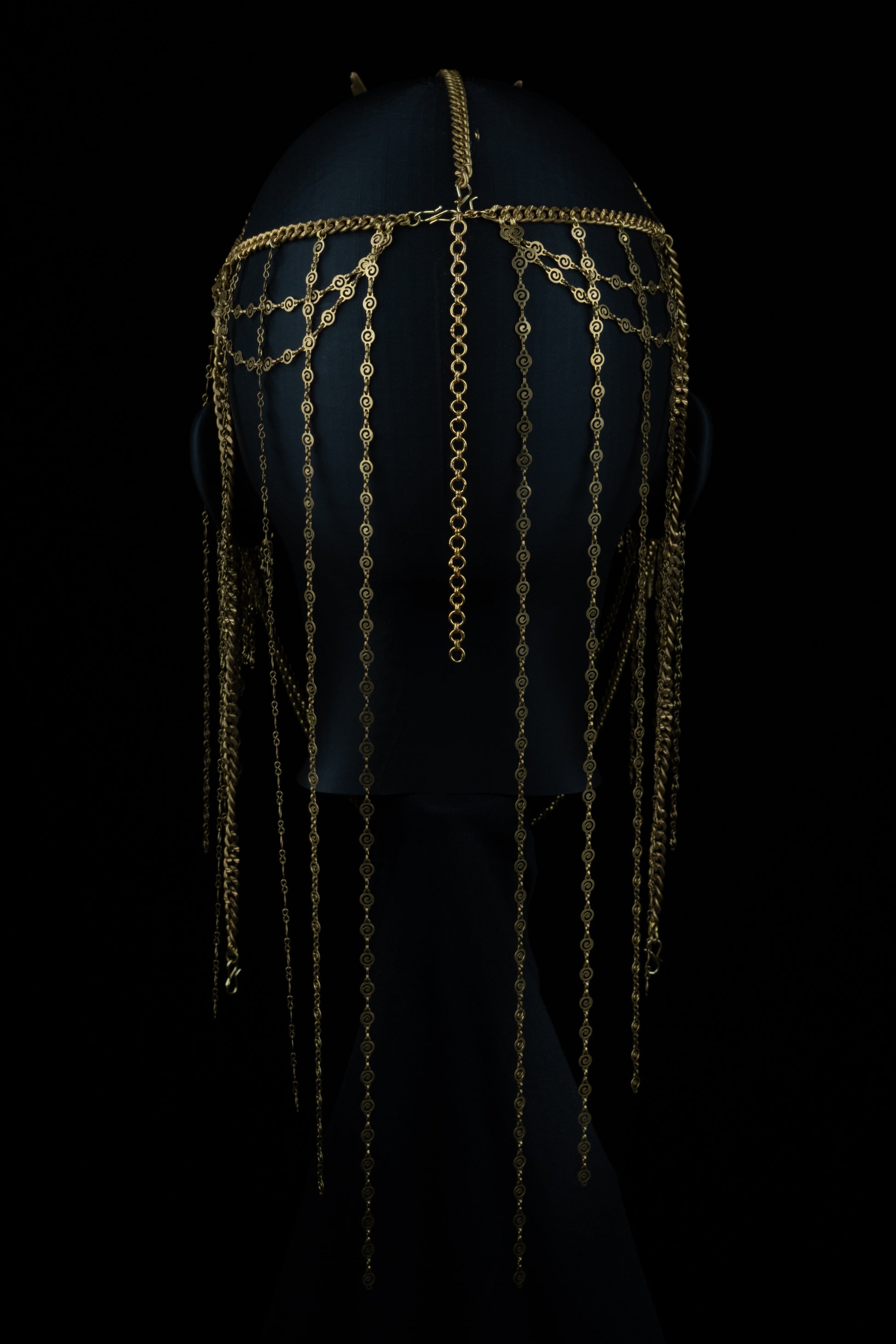 Handmade from delicate brass chain and cut with care, Skywarden is a headpiece that blurs the line between armor and enchantment.